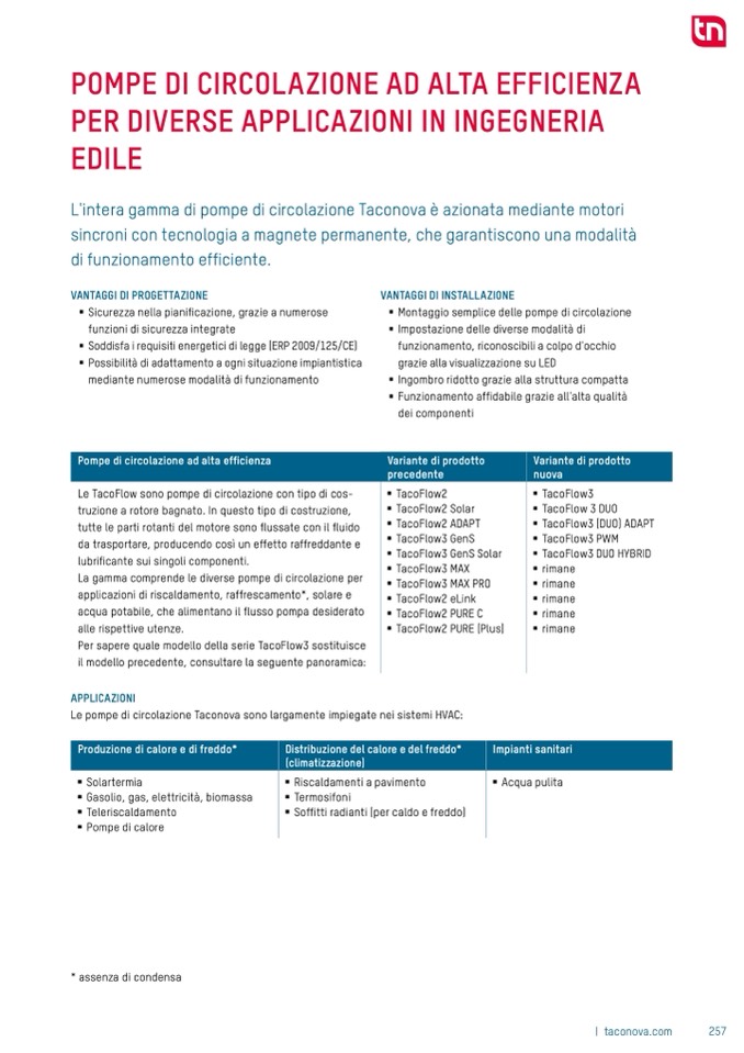 Le TacoFlow sono pompe di circolazione con tipo di cos-