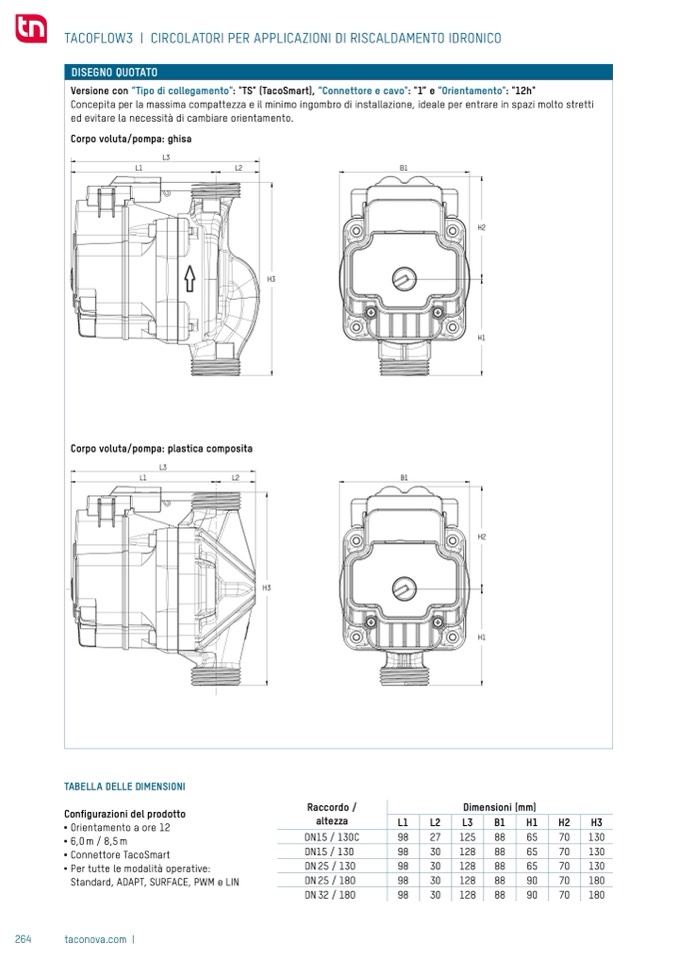 Versione con “Tipo di collegamento": "TS" (TacoSmart), “Connettore e cavo": "1” e “Orientamento": "12h"