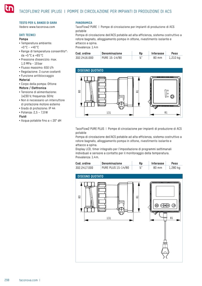 TacoFlow2 PURE PLUS | Pompe di circolazione per impianti di produzione di ACS