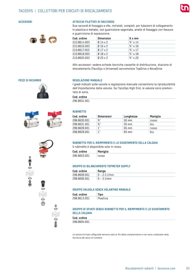 Altri accessori: vedere schede tecniche cassette di distribuzione, stazione di