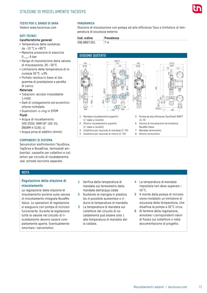 Stazione di miscelazione con pompa ad alta efficienza Taco e limitatore di tem-