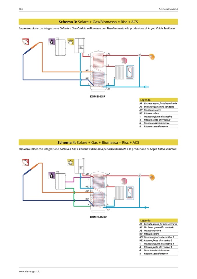 Impianto solare con integrazione Caldaia a Gas e Caldaia a Biomassa per Riscaldamento e la produzione di Acqua Calda Sanitaria