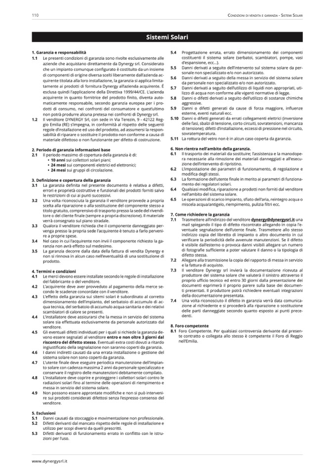 Condizioni di vendita e Garanzia - sistemi solari