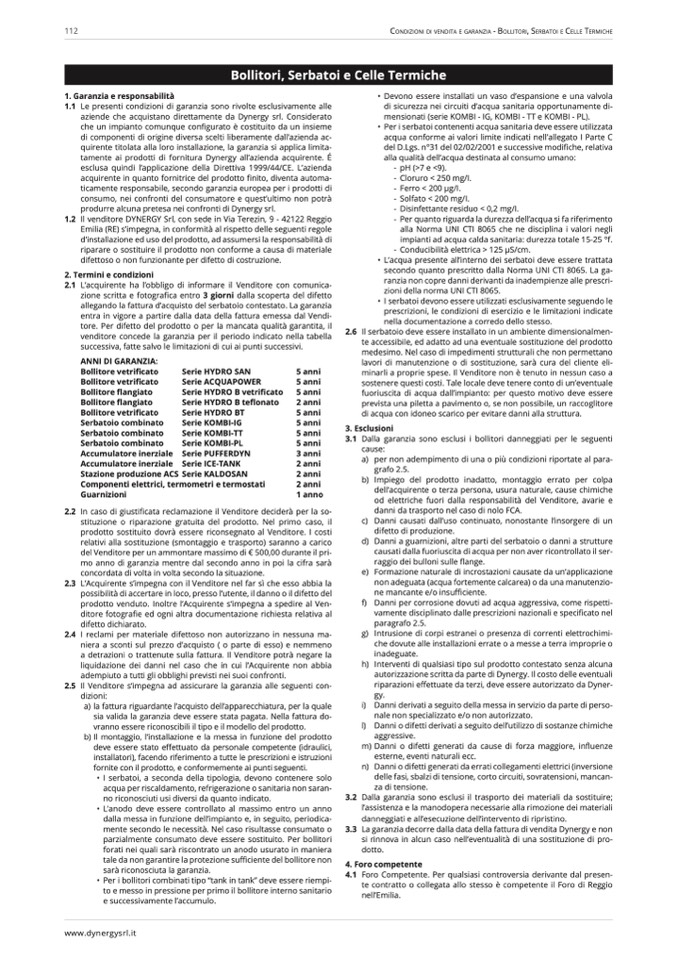 Condizioni di vendita e Garanzia - Bollitori, serBatoi e Celle termiChe