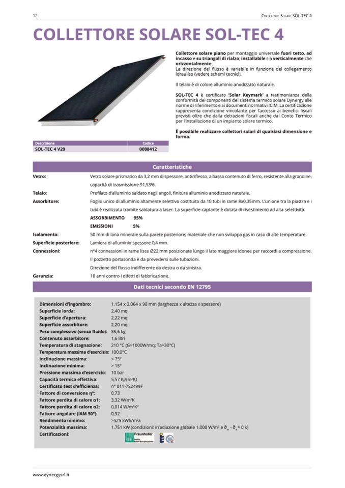 Collettore Solare Sol-teC 4