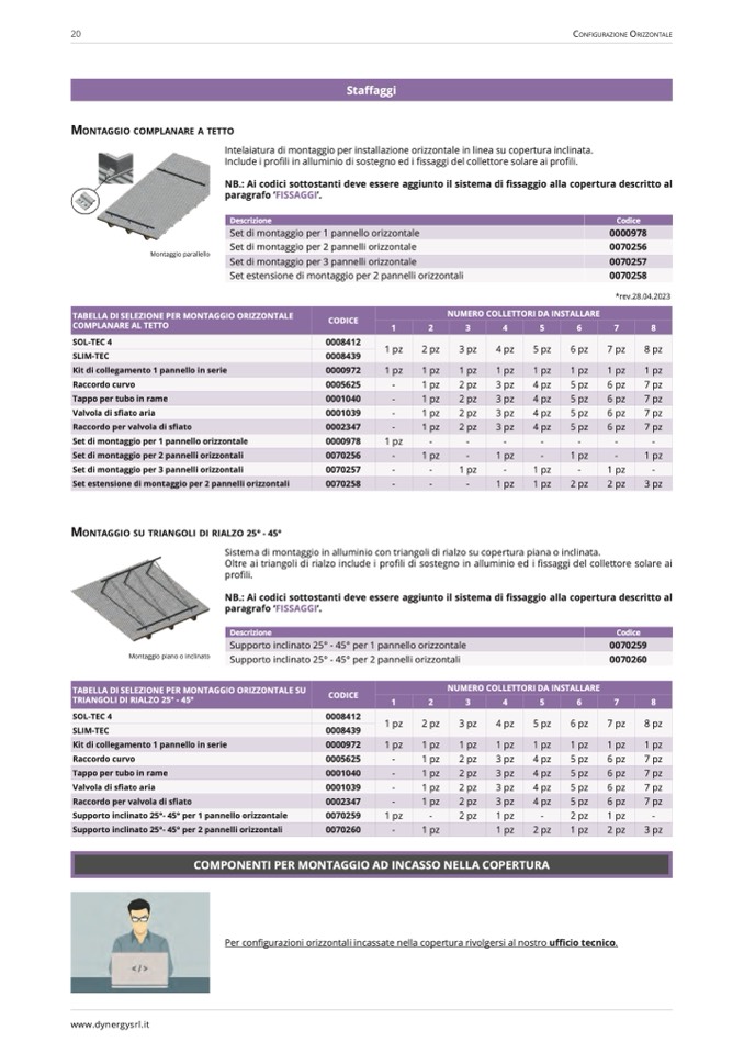 Per configurazioni orizzontali incassate nella copertura rivolgersi al nostro ufficio tecnico.