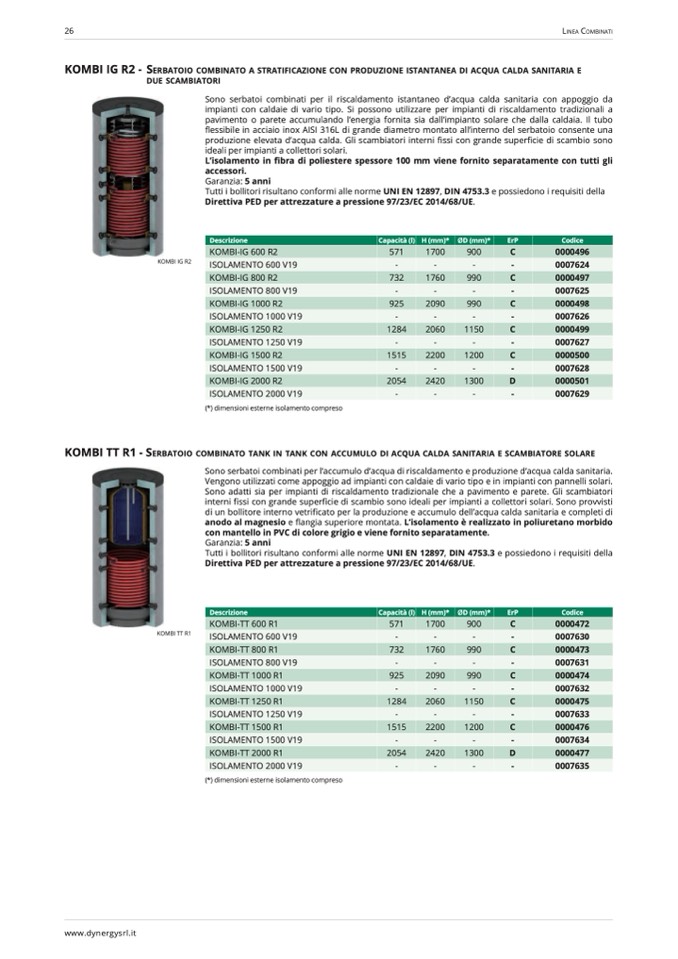 Tutti i bollitori risultano conformi alle norme UNI EN 12897, DIN 4753.3 e possiedono i requisiti della