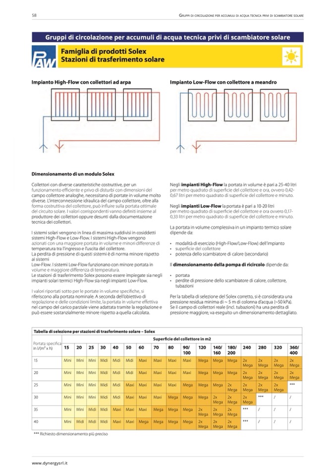 Tabella di selezione per stazioni di trasferimento solare – Solex
