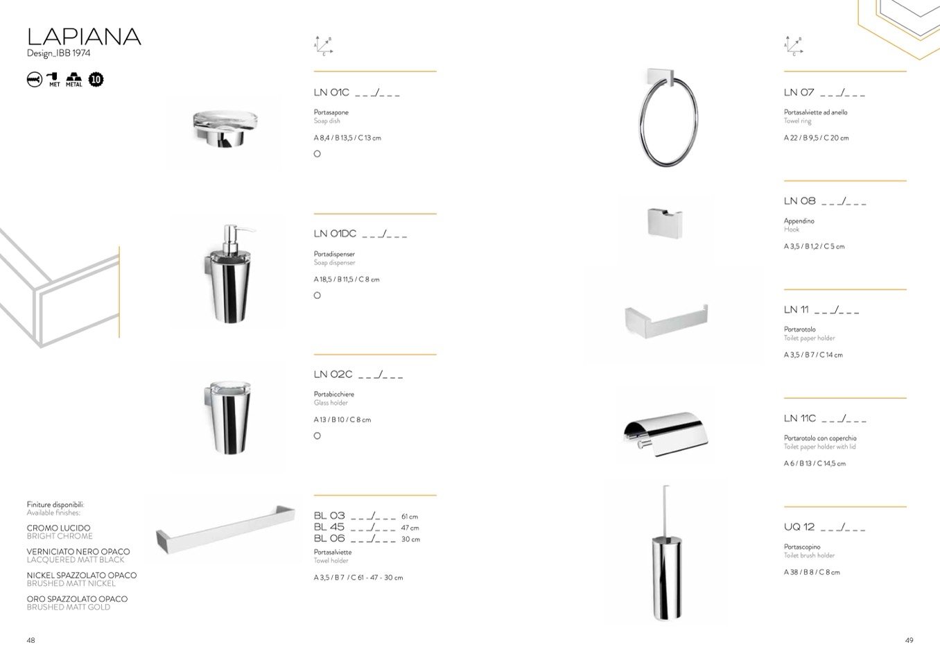 Finiture disponibili: