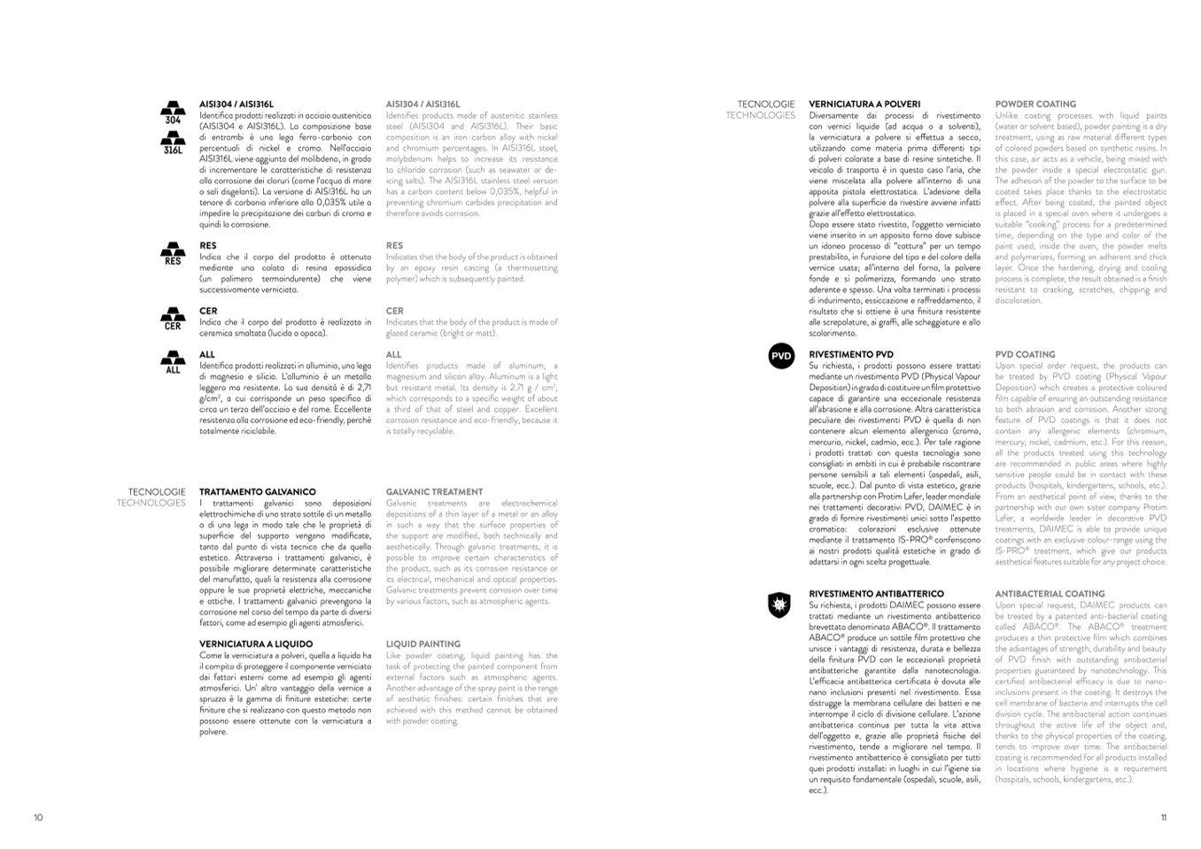 (AISI304 e AISI316L). La composizione base