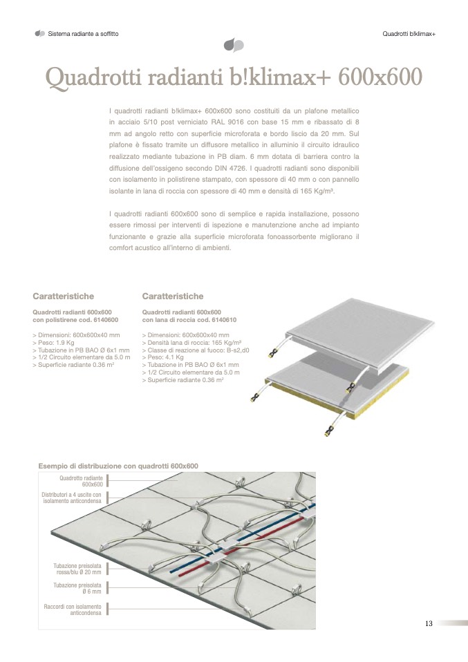 plafone è fissato tramite un diffusore metallico in alluminio il circuito idraulico