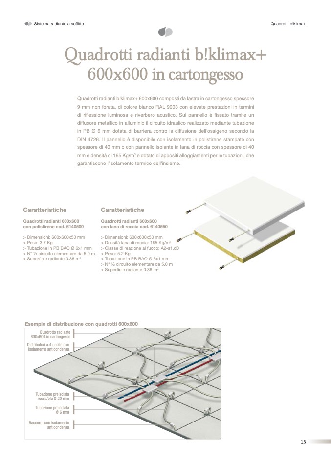Quadrotti radianti b!klimax+ 600x600 composti da lastra in cartongesso spessore