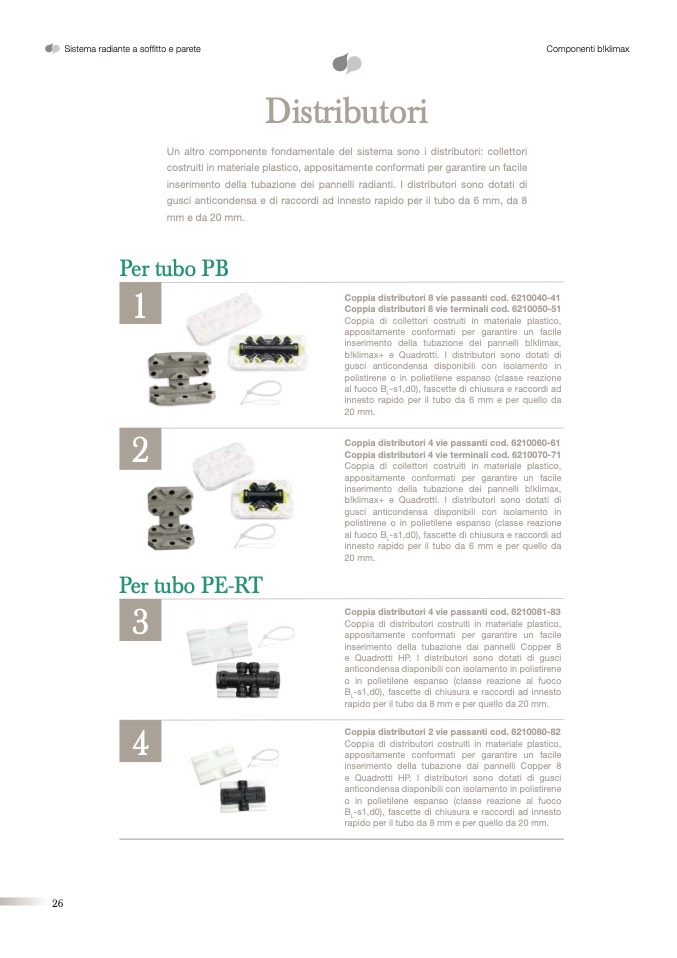 inserimento della tubazione dei pannelli radianti. I distributori sono dotati di