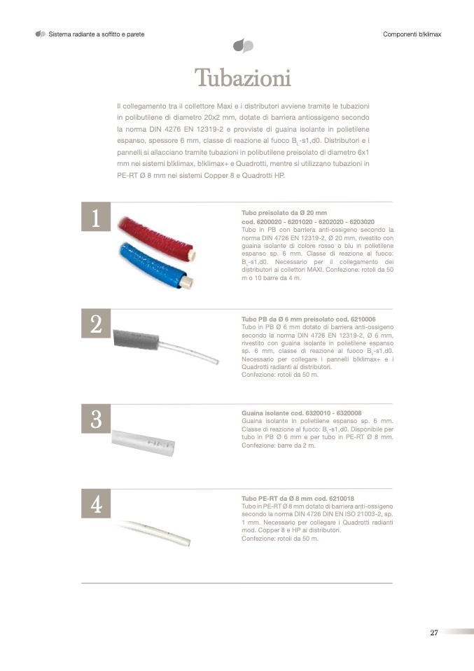 mm nei sistemi b!klimax, b!klimax+ e Quadrotti, mentre si utilizzano tubazioni in