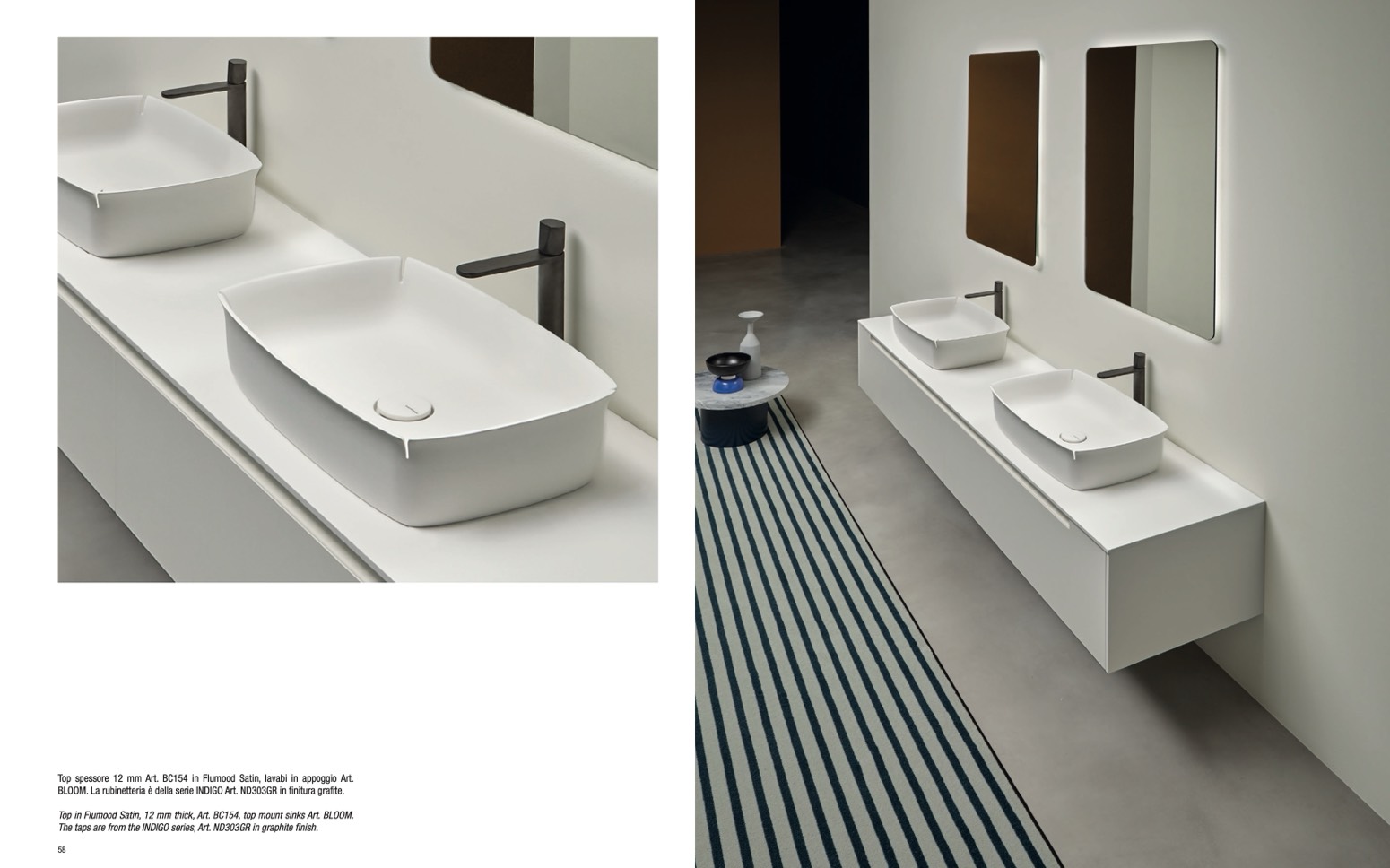 BLOOM. La rubinetteria è della serie INDIGO Art. ND303GR in finitura grafite.