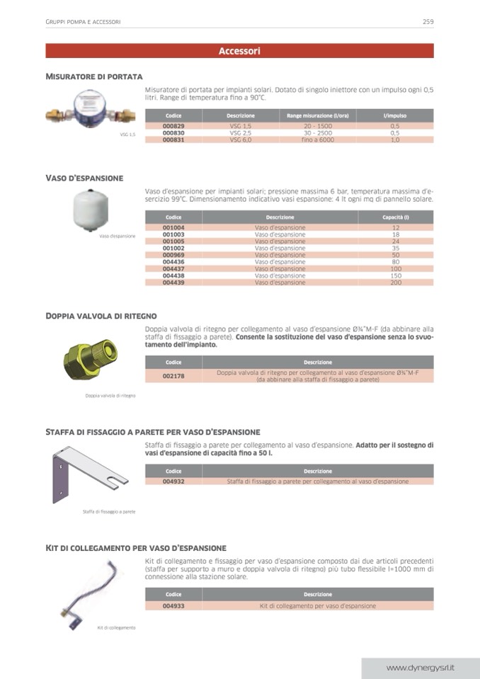 sercizio 99°C. Dimensionamento indicativo vasi espansione: 4 lt ogni mq di pannello solare.