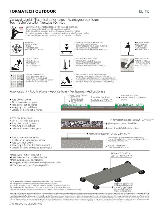 per materiale installato a regola d’arte. / Ceramic tiles undergo a compacting thermal treatment that ensures resistance and durability. The low level of water absorption makes the slabs frost resistant. This could result in superficial water stagnations even if