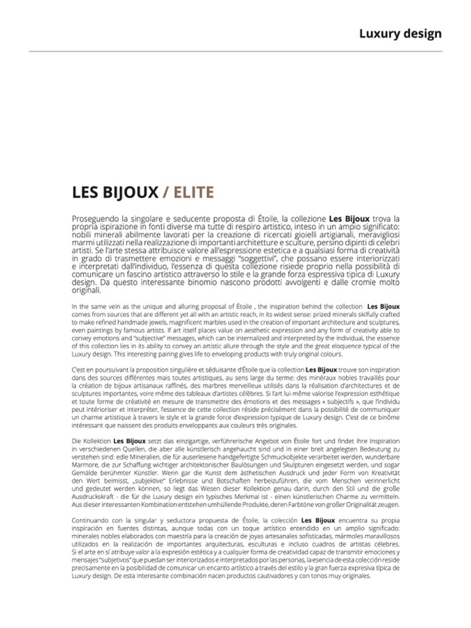 un charme artistique à travers le style et la grande force d’expression typique de Luxury design. C’est de ce binôme