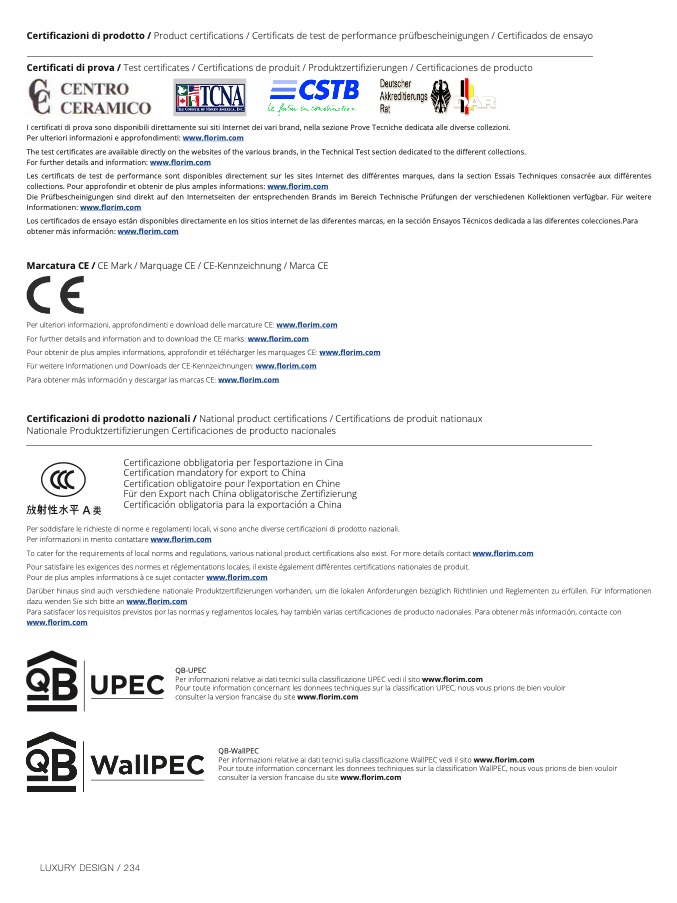 Pour obtenir de plus amples informations, approfondir et télécharger les marquages CE: www.florim.co