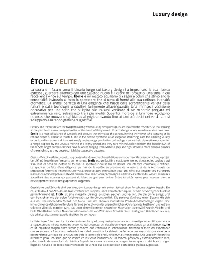 a range inspired by the unusual veining of a highly-prized and very rare mineral, selected from the least-known o