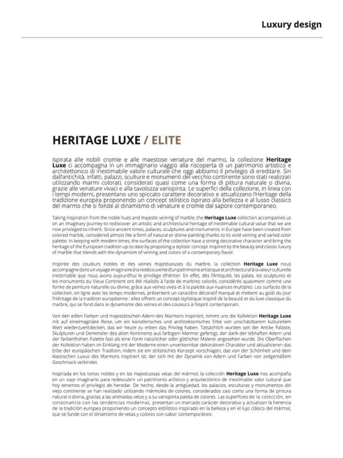 Taking inspiration from the noble hues and majestic veining of marble, the Heritage Luxe collection accompanies us