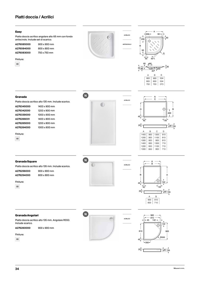 Piatti doccia / Acrilici
