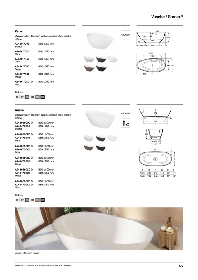 Misure in mm. Sostituire (..) del Rif. di prodotto con il codice di colore scelto: