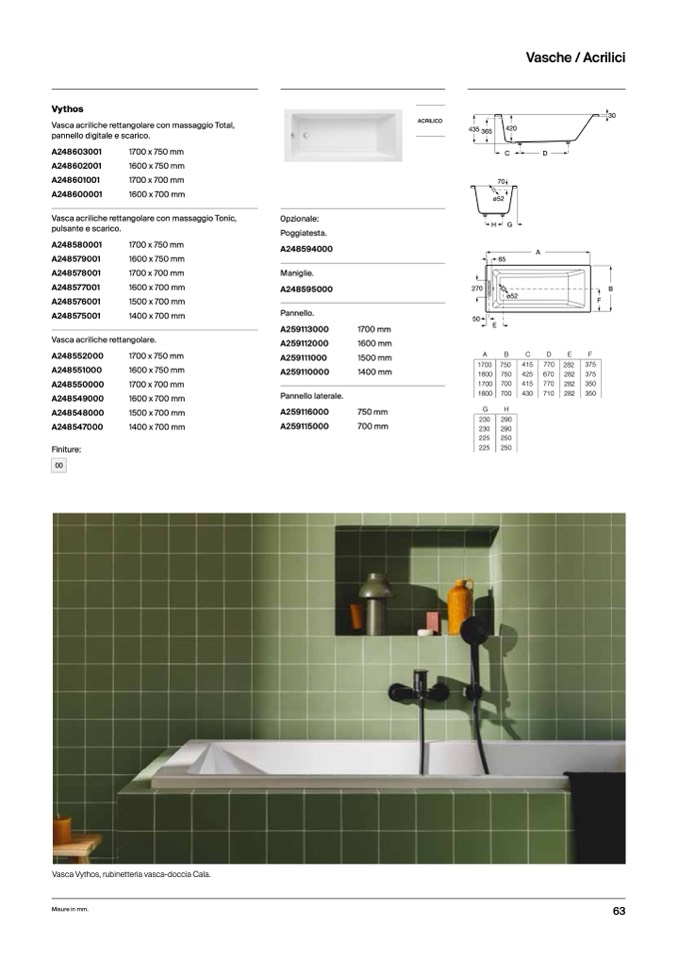 Vasca Vythos, rubinetteria vasca-doccia Cala.