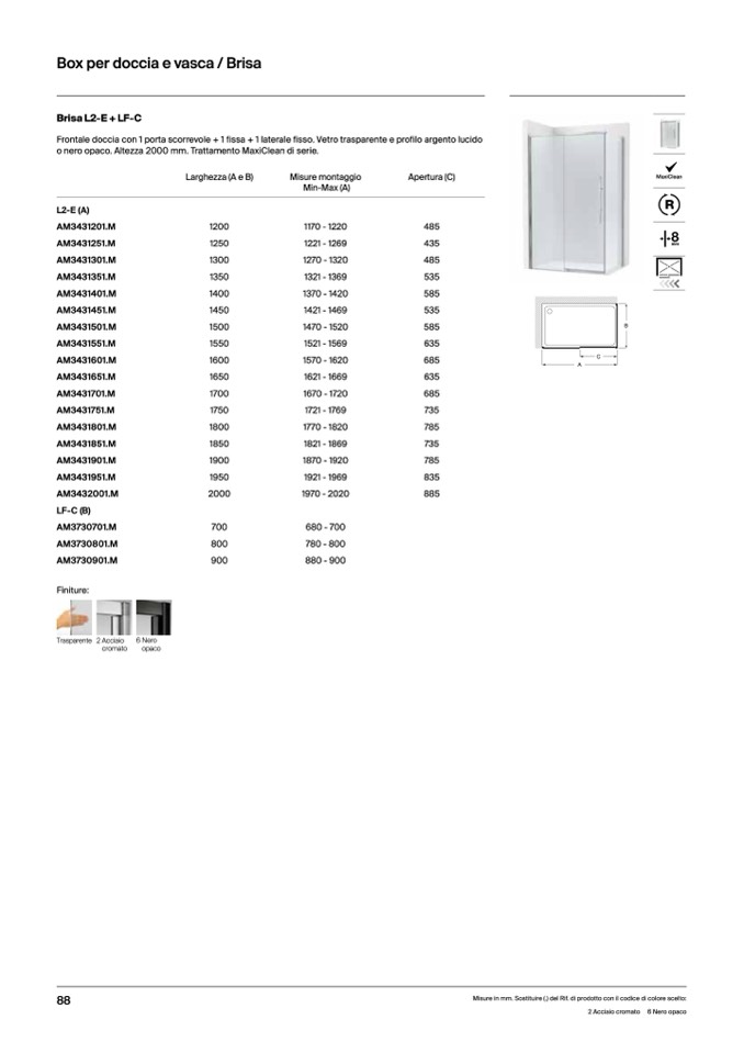 o nero opaco. Altezza 2000 mm. Trattamento MaxiClean di serie.