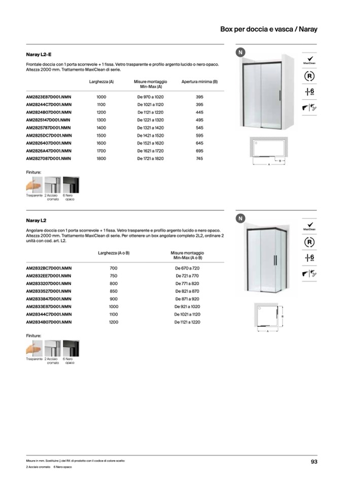 Altezza 2000 mm. Trattamento MaxiClean di serie. Per ottenere un box angolare completo 2L2, ordinare 2