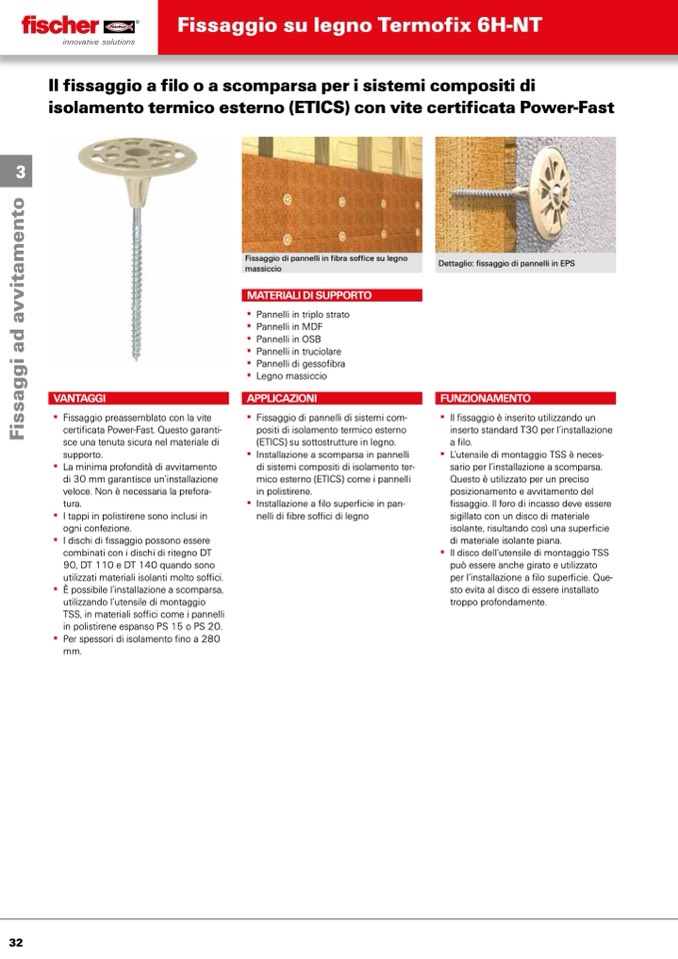 Fissaggio di pannelli in fibra soffice su legno