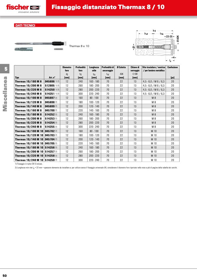 1) Fissaggio in nylon SX 5 incluso.