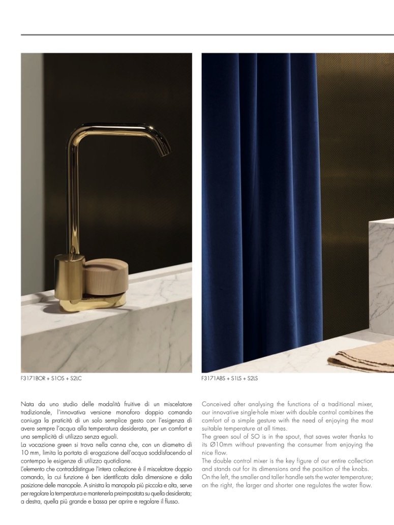 L’elemento che contraddistingue l’intera collezione è il miscelatore doppio