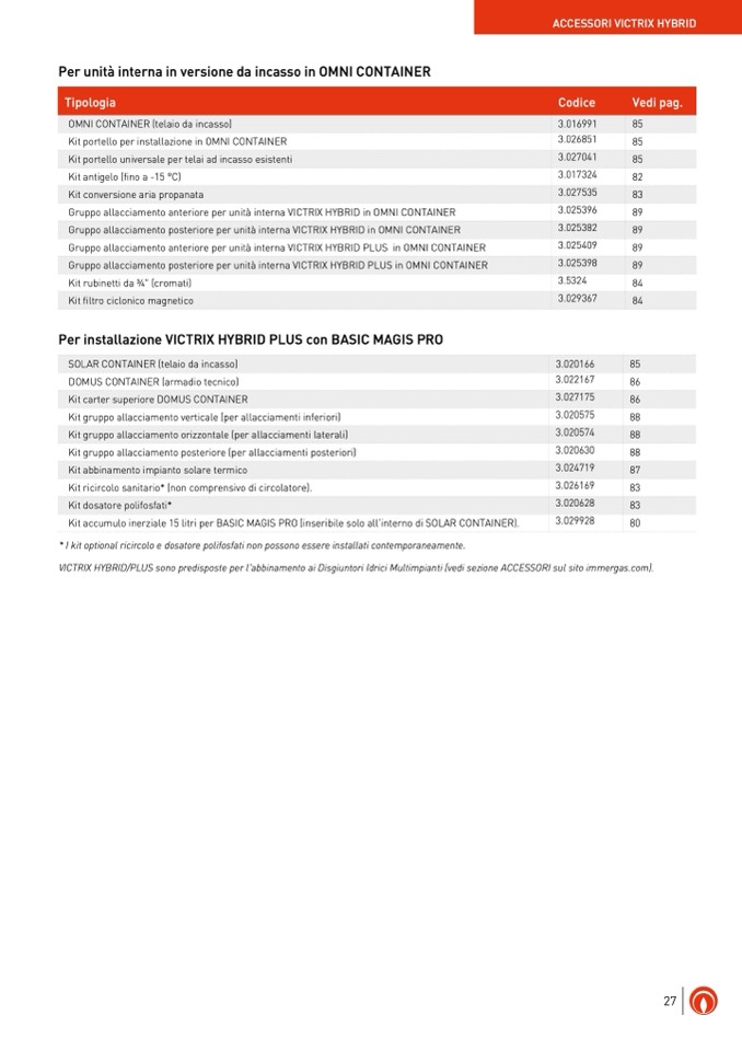 VICTRIX HYBRID/PLUS sono predisposte per l'abbinamento ai Disgiuntori Idrici Multimpianti (vedi sezione ACCESSORI sul sito immergas.com).
