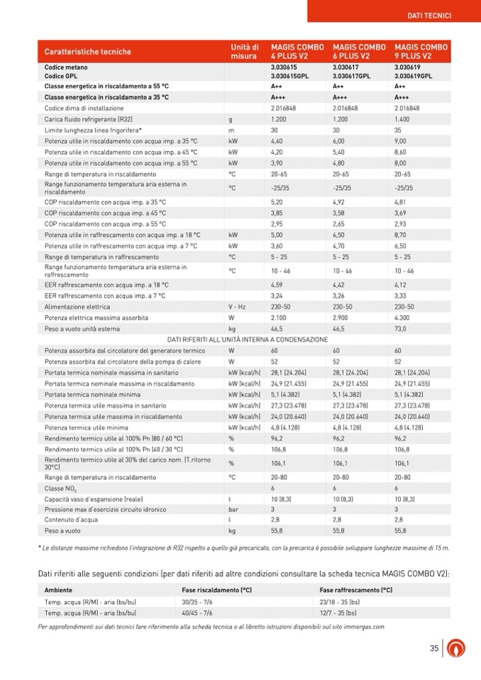 COP riscaldamento con acqua imp. a 35 °C