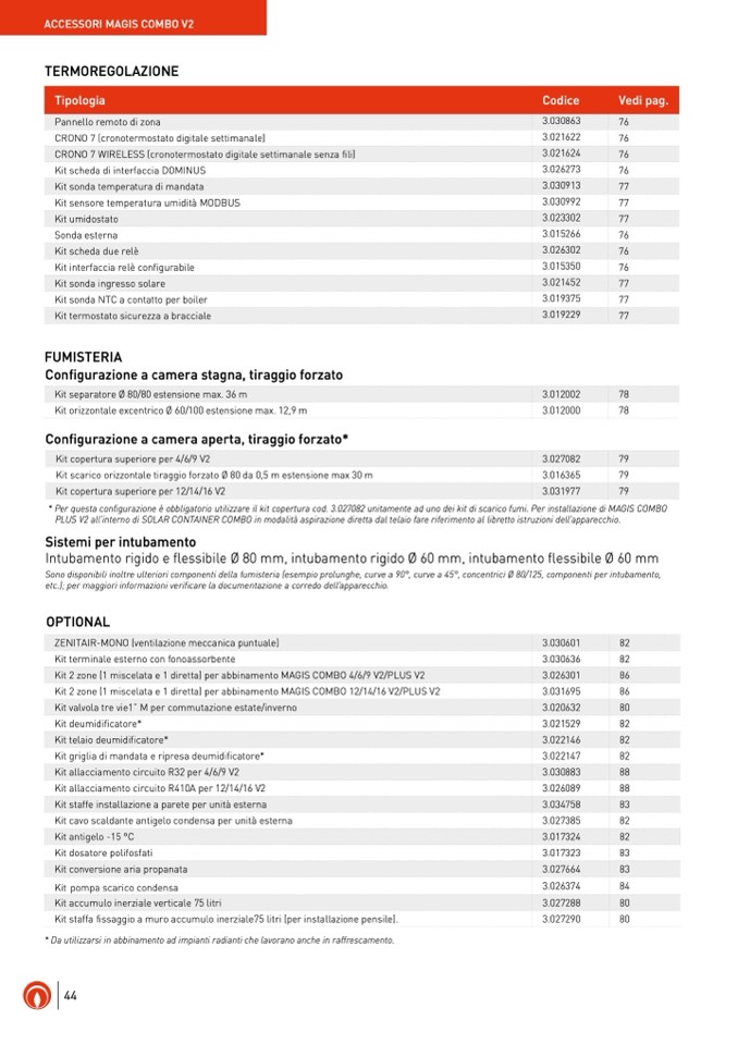 Sono disponibili inoltre ulteriori componenti della fumisteria (esempio prolunghe, curve a 90°, curve a 45°, concentrici Ø 80/125, componenti per intubamento,
