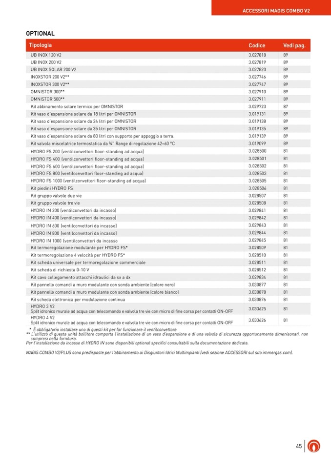 MAGIS COMBO V2/PLUS sono predisposte per l'abbinamento ai Disgiuntori Idrici Multimpianti (vedi sezione ACCESSORI sul sito immergas.com).