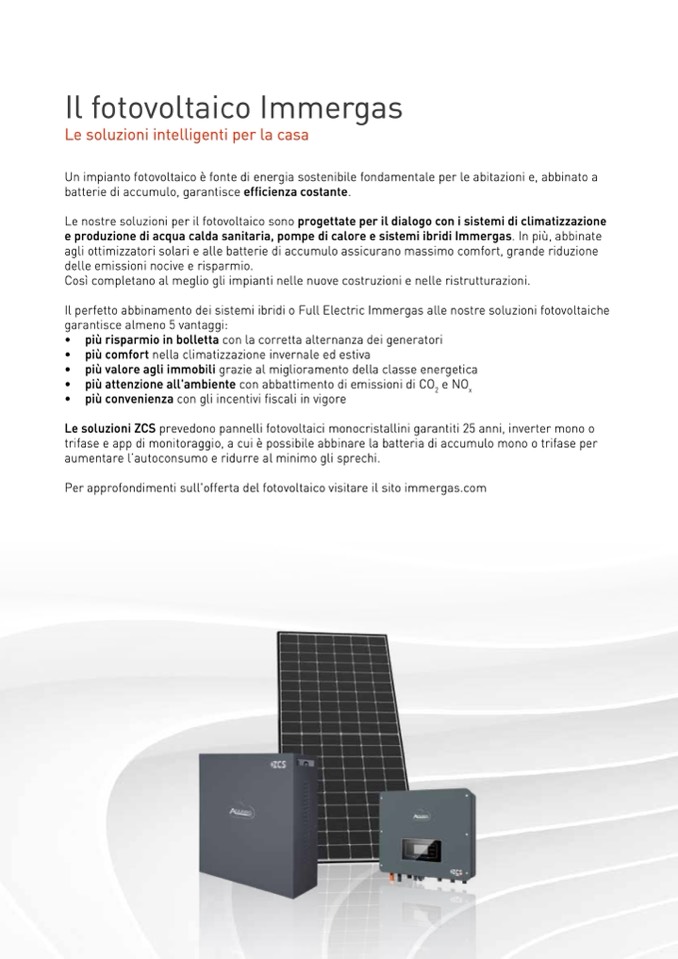 Per approfondimenti sull'offerta del fotovoltaico visitare il sito immergas.com