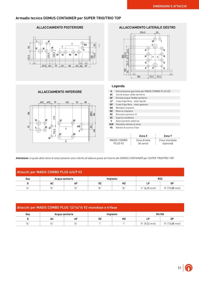 Attenzione: le quote delle dime di allacciamento sono riferite all’adesivo posto all’interno del DOMUS CONTAINER per SUPER TRIO/TRIO TOP.