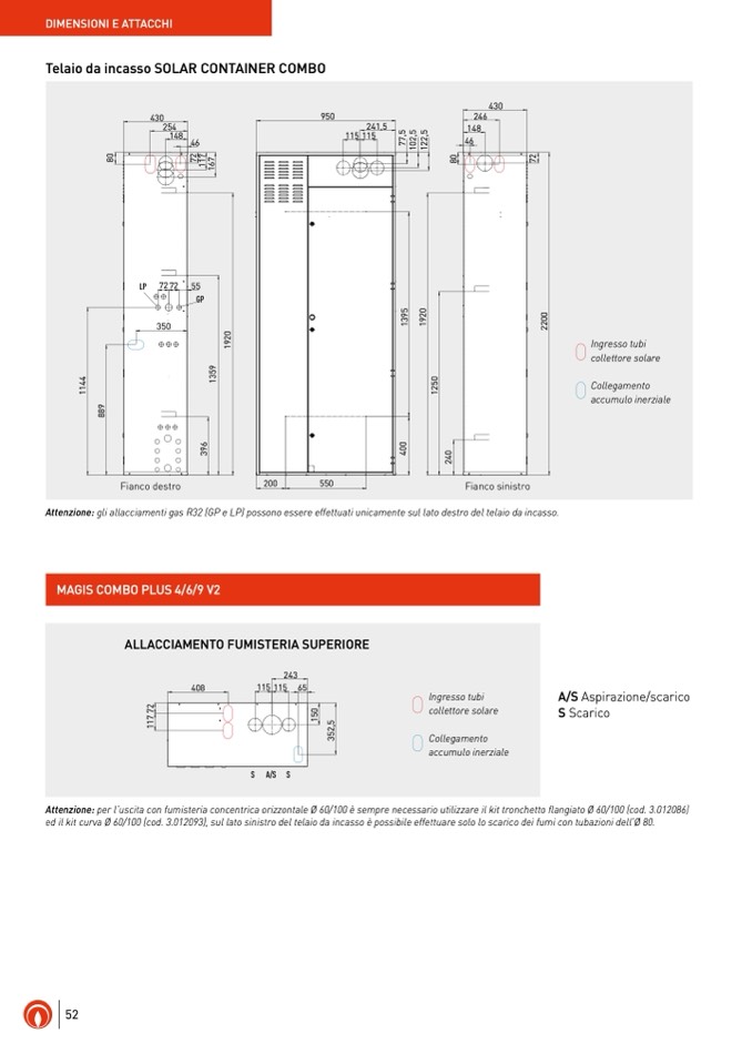 Attenzione: per l’uscita con fumisteria concentrica orizzontale Ø 60/100 è sempre necessario utilizzare il kit tronchetto flangiato Ø 60/100 (cod. 3.012086)