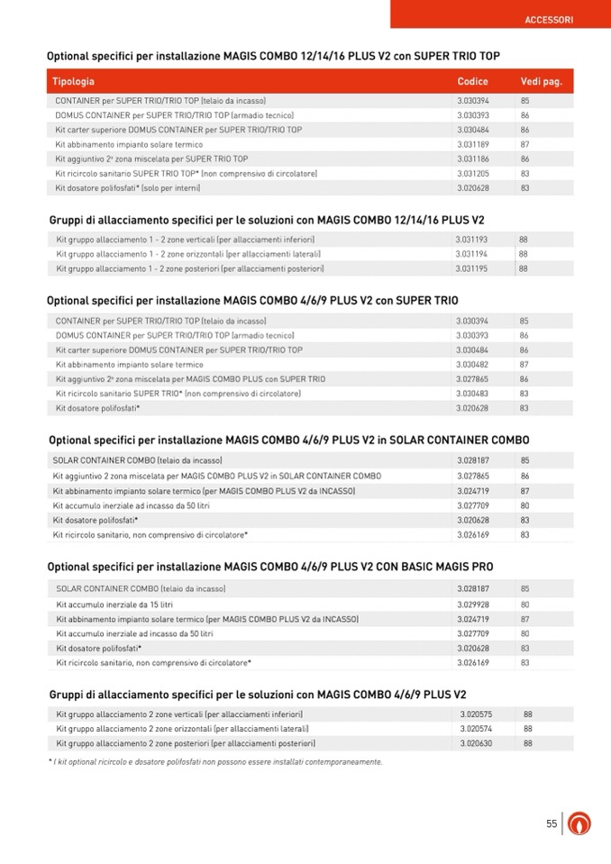 * I kit optional ricircolo e dosatore polifosfati non possono essere installati contemporaneamente.