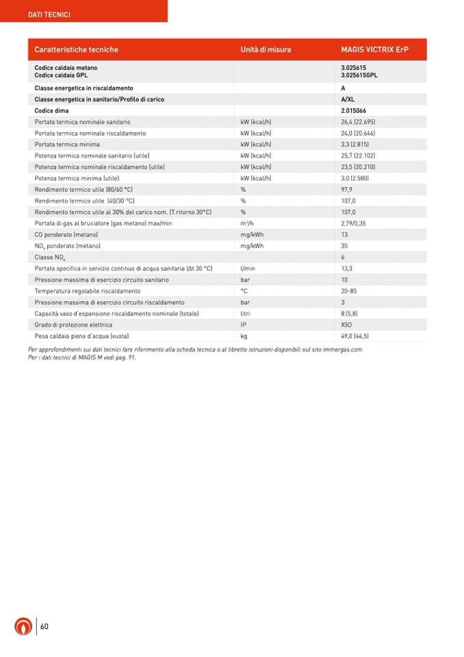 Per approfondimenti sui dati tecnici fare riferimento alla scheda tecnica o al libretto istruzioni disponibili sul sito immergas.com