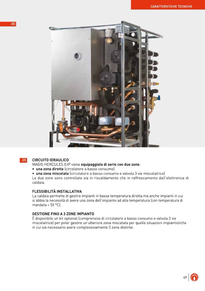 • una zona miscelata (circolatore a basso consumo e valvola 3 vie miscelatrice)