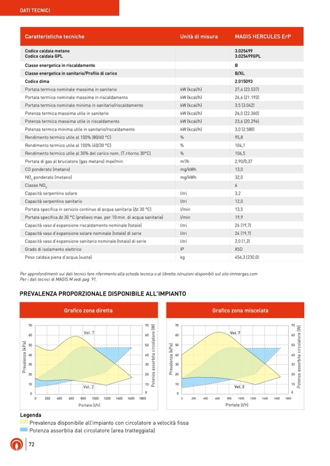 Per approfondimenti sui dati tecnici fare riferimento alla scheda tecnica o al libretto istruzioni disponibili sul sito immergas.com
