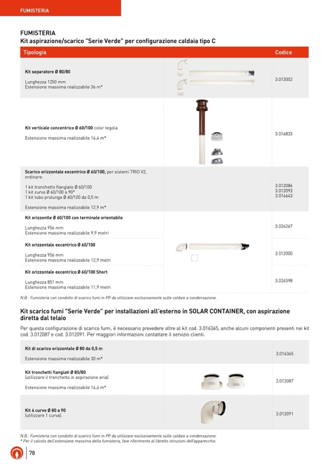 N.B.: Fumisteria con condotto di scarico fumi in PP da utilizzare esclusivamente sulle caldaie a condensazione.