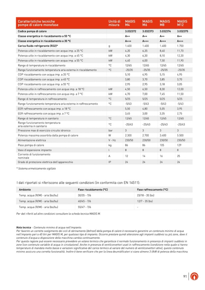 nell'impianto pari a 40 litri per MAGIS M, per qualsiasi tipo di impianto. Occorre prestare quindi attenzione agli impianti suddivisi su più zone, dove il