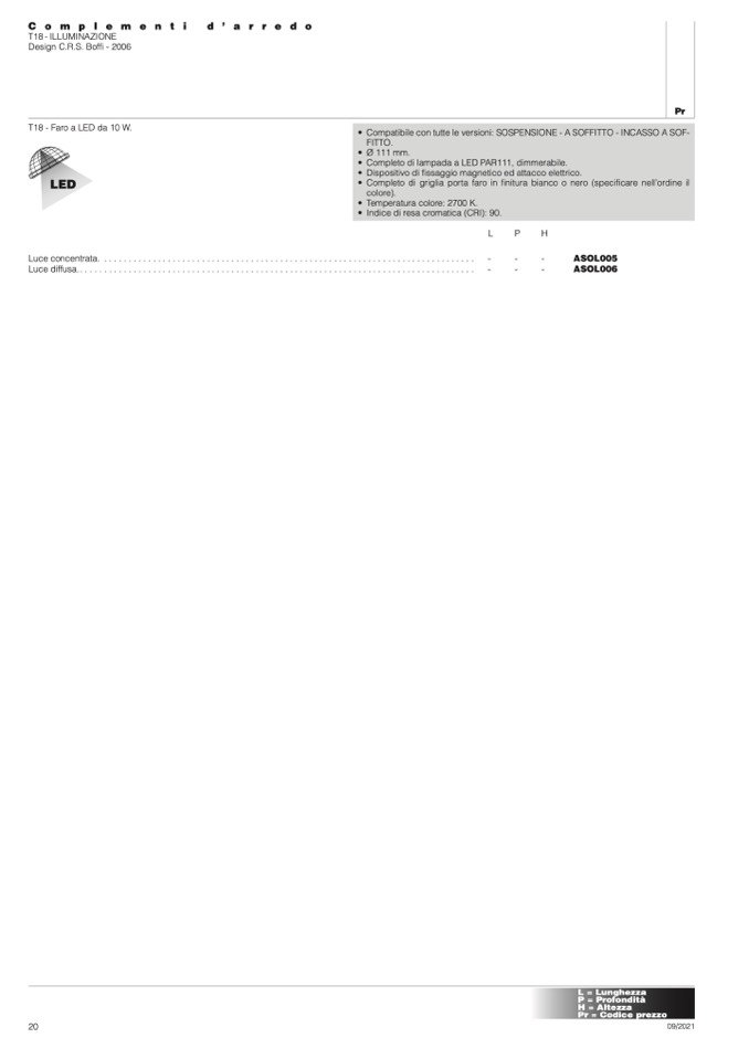 • Completo di griglia porta faro in finitura bianco o nero (specificare nell’ordine il