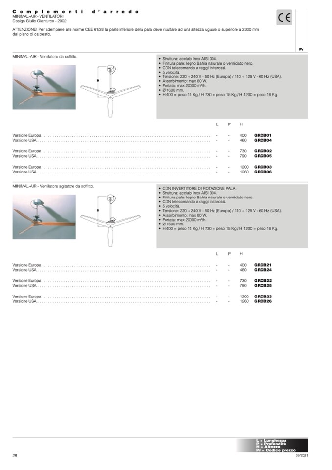 • CON INVERTITORE DI ROTAZIONE PALA.
