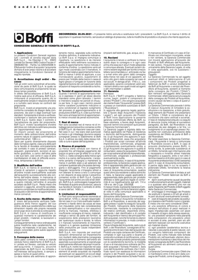 DECORRENZA 20.09.2021 - Il presente listino annulla e sostituisce tutti i precedenti. La Boffi S.p.A. si riserva il diritto di