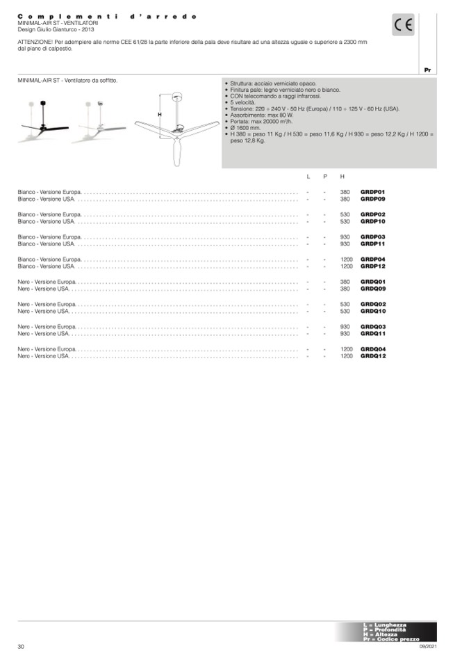 • H 380 = peso 11 Kg / H 530 = peso 11,6 Kg / H 930 = peso 12,2 Kg / H 1200 =